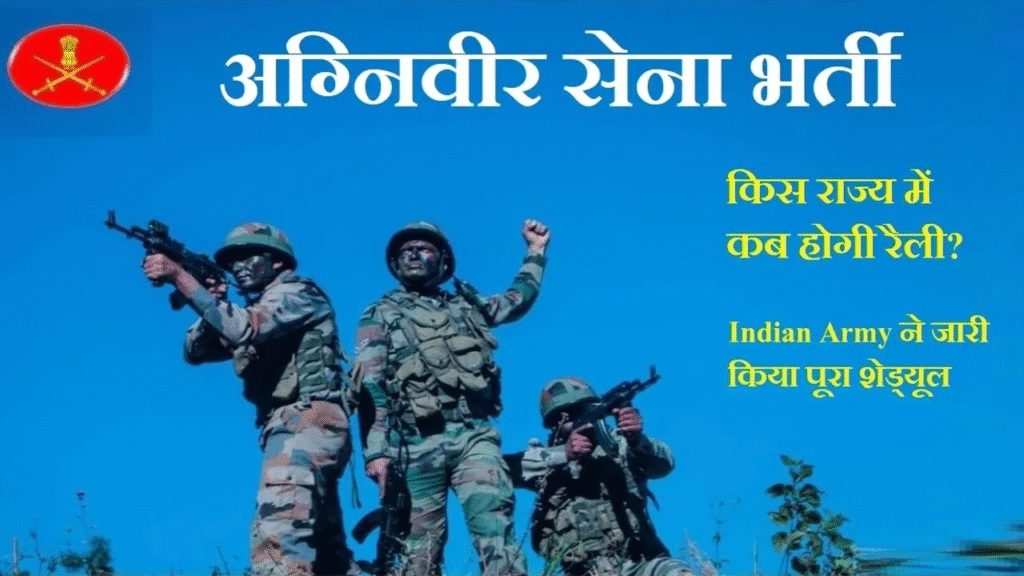 भारतीय सेना ने Agniveervayu (Agniveer) भर्ती रैली 2025–26 की घोषणा की है। इसमें चयनित उम्मीदवारों को 4‑साल के कार्मिक पदों पर तैनात किया जाएगा।
