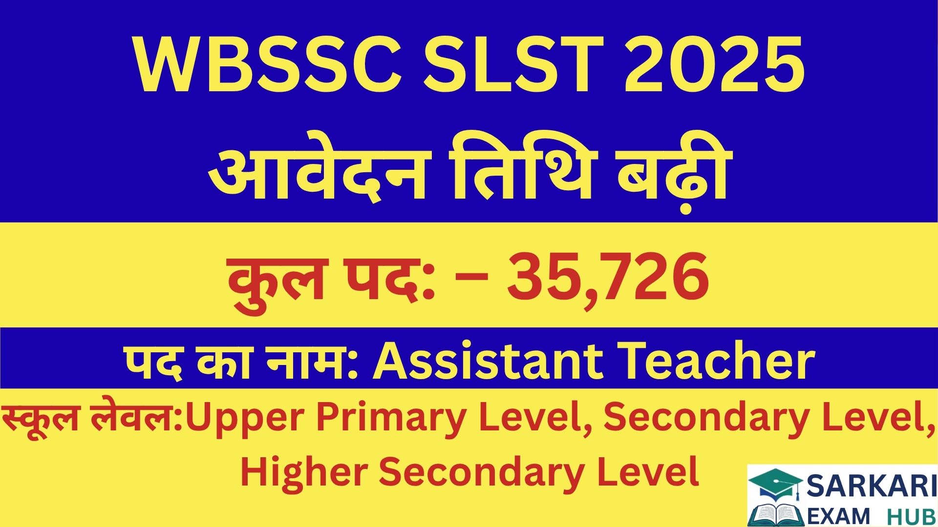 WBSSC SLST 2025 – आवेदन तिथि बढ़ी, 35,726 असिस्टेंट टीचर पदों पर भर्ती